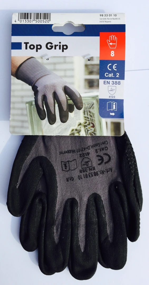 S nitrilovými rukavicami Top Grip je možné bezpečne predmet uchopiť na klzkom povrchu. Sú odolné proti vlhkosti.